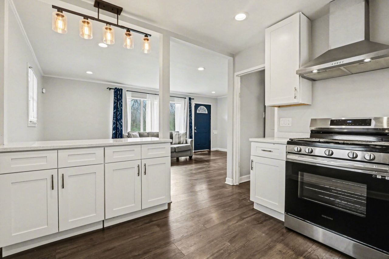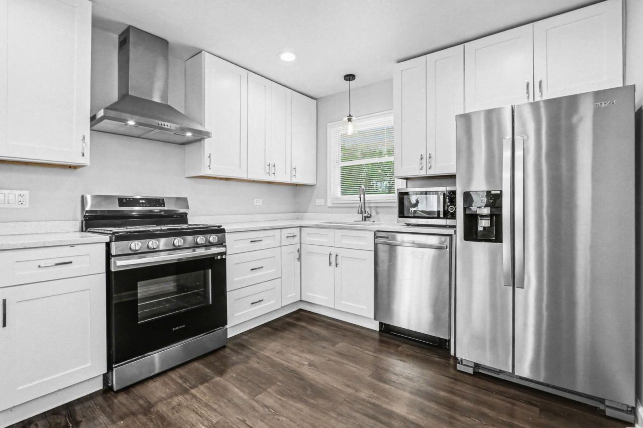 IT'S THE ONE!! Don't miss this 3 BEDROOM / 1 BATH UPDATED ranch home. White trim and 6-panel doors throughout. Gorgeous OPEN-CONCEPT kitchen with plenty of 42 white shaker cabinets, breakfast bar, quartz countertops custom subway tile backsplash and a full set of stainless steel appliances. Luxury wood laminate flooring throughout including in bedrooms. Updated bathroom with modern vanity and custom tile shower wall. Separate laundry room - washer and dryer included. Large living room - it's the perfect place to entertain! Recessed lighting and all newer light fixtures throughout. MAINTENANCE FREE - brick and vinyl home with newer vinyl windows. Plenty of storage with a 1.5 CAR GARAGE and extra long driveway for additional parking. This home has an incredible layout and offers exceptional value! Nothing to do here except relax and enjoy your private fully-fenced backyard with plenty of room to grill and entertain on the large concrete deck. Enjoy all the area has to offer including walking trails, parks and abundance of nature!! Commuters can easily access major highways, dining shopping and schools. Lower taxes even further with your homeowner exemption. Ask your lender about grants that may be available for this home! Book your showing today!!